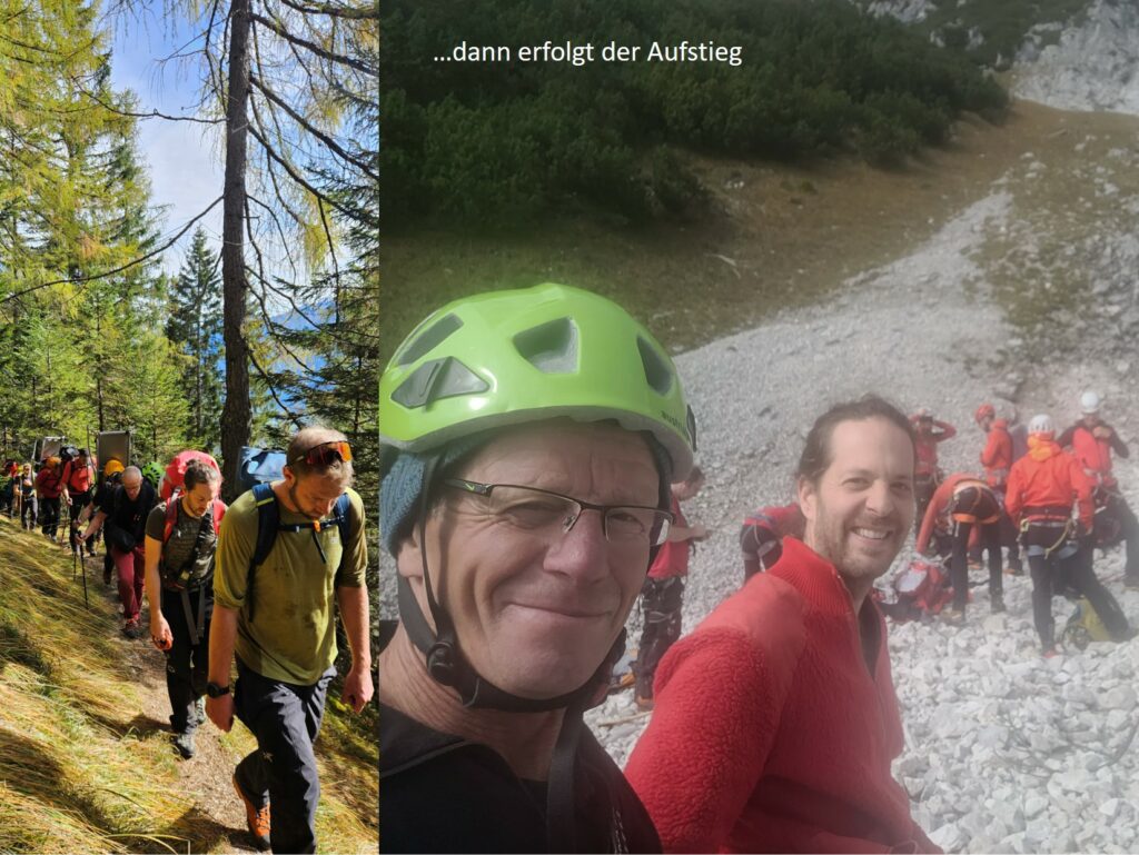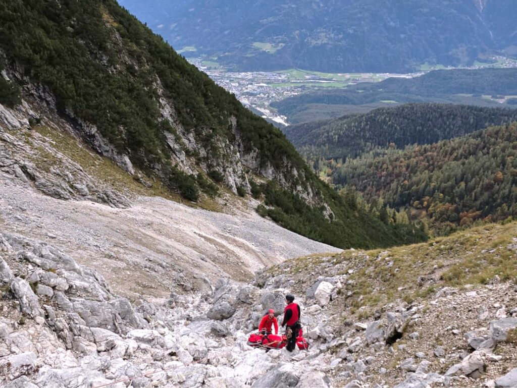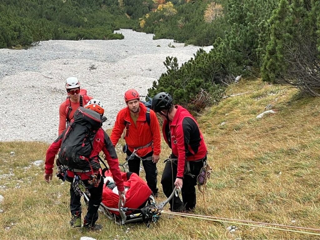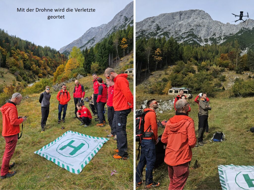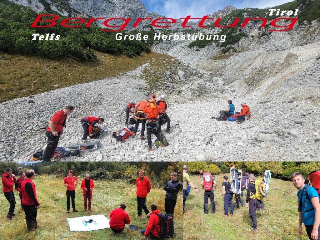 Bei der großen Herbstübung im Gelände wurde eine verletzte Person in unwegsamem Terrain mittels Drohne lokalisiert. Anhand der gewonnenen GPS-Daten stieg die Mannschaft zum Opfer auf, führte eine erste Crash-Bergung, Erstversorgung und den Abtransport mit der Tyromont-Trage durch. Glücklicherweise fanden die Übungen bei traumhaftem Herbstwetter statt – ideale Bedingungen, wie sie bei realen Einsätzen oft nur selten gegeben sind.
