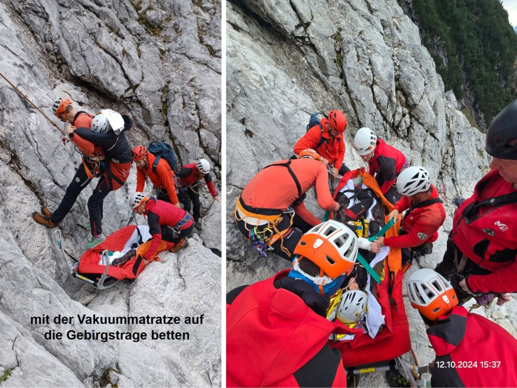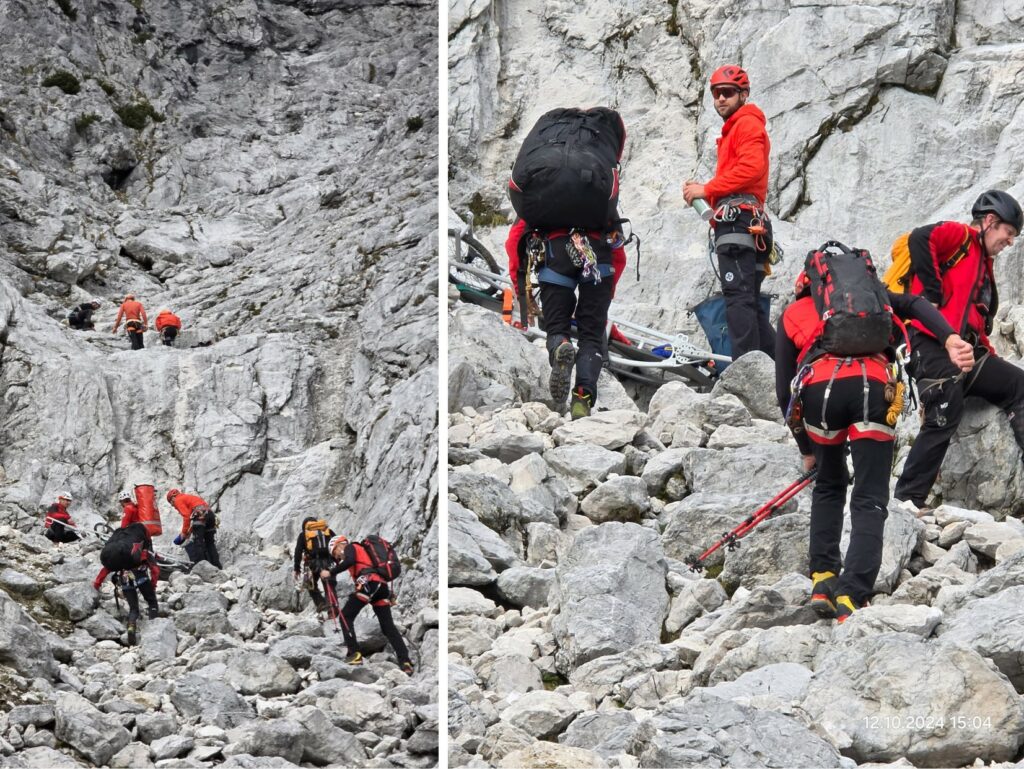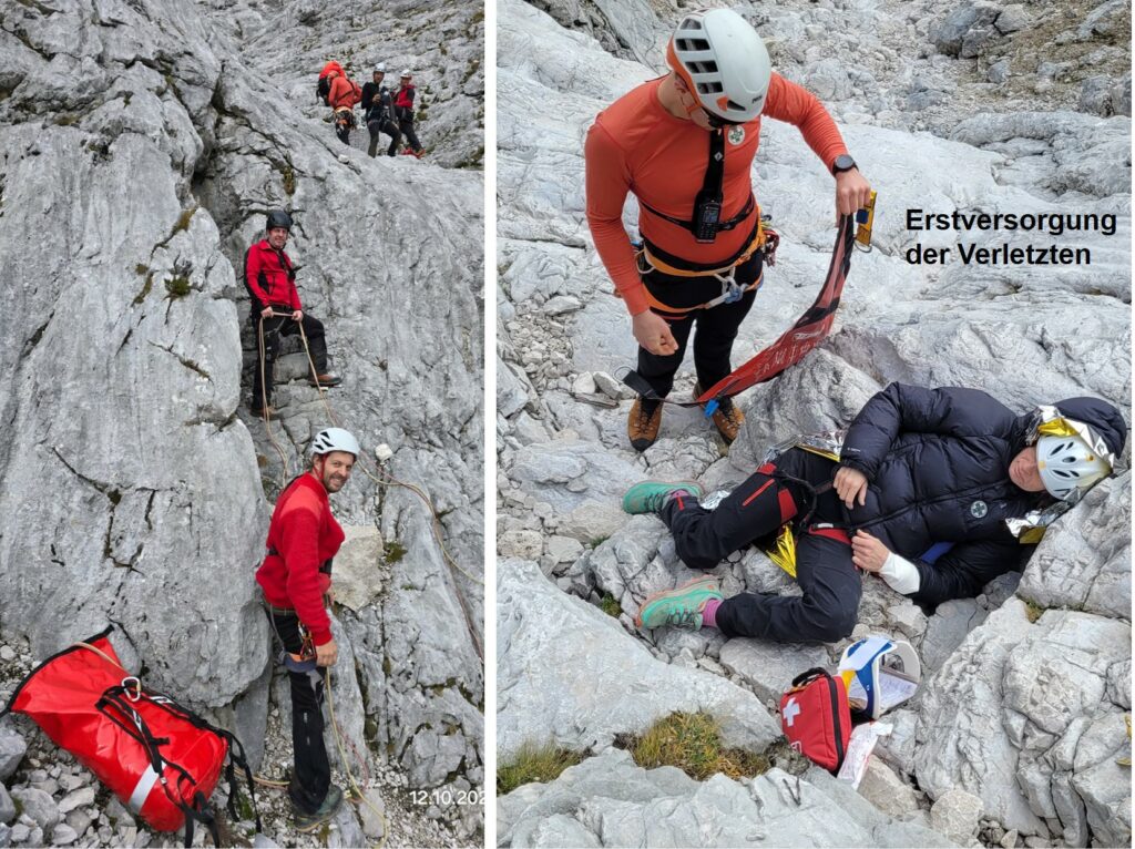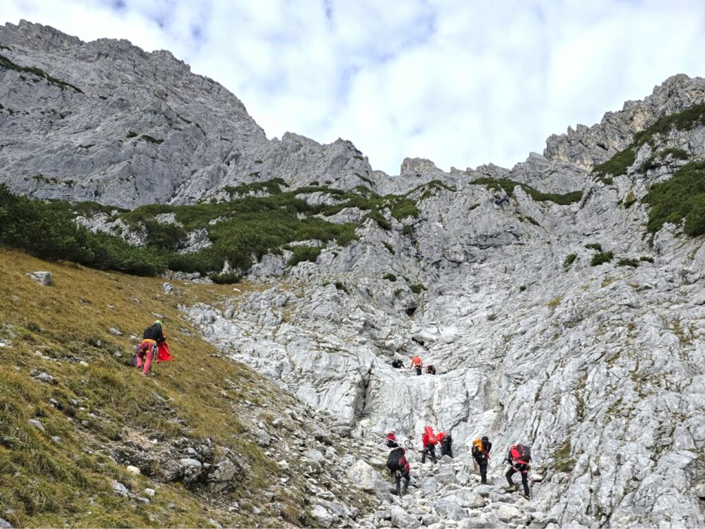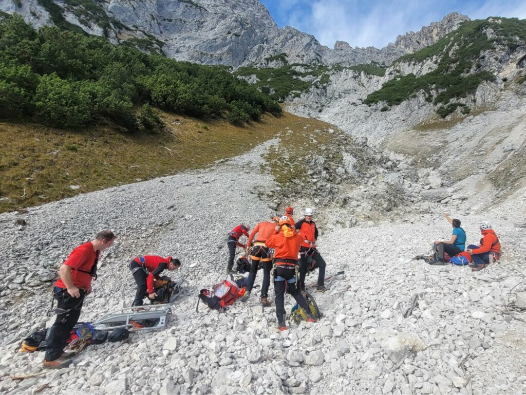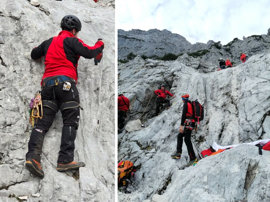Bei der großen Herbstübung im Gelände wurde eine verletzte Person in unwegsamem Terrain mittels Drohne lokalisiert. Anhand der gewonnenen GPS-Daten stieg die Mannschaft zum Opfer auf, führte eine erste Crash-Bergung, Erstversorgung und den Abtransport mit der Tyromont-Trage durch. Glücklicherweise fanden die Übungen bei traumhaftem Herbstwetter statt – ideale Bedingungen, wie sie bei realen Einsätzen oft nur selten gegeben sind.